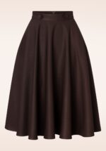 In diesem Di Di Swing Skirt in Brown wirst du einen schwungvollen Winter erleben! Dieser klassische, elegante Swingrock ist eine echte Perle im Stil der 50er Jahre und er wird in Taillenhöhe getragen. Die Zierknöpfe an der Seite sind nicht nur ein hübsches Detail, sondern sie werden die Taille noch mal extra betonen. Hergestellt aus einem festen, aber trotzdem fließenden, dunkelbraunen Stoff (kaum dehnbar). Auch der Winter kann sehr schön sein, vor allem mit einem Rock wie Di Di in deinem Kleiderschrank 😉 * Swingrock * Knopf-Details * Seitliche Eingrifftaschen * Reißverschluss und Ösen-/Hakenverschluss hinten * Kombiniere den Rock mit einem Petticoat für einen besonders festlichen Effekt * Endet unterhalb des Knies bei einer Größe von 1.70m