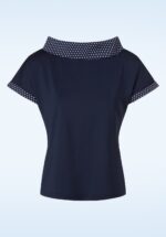 Dieses vielseitige Oberteil besticht durch tolle Akzente mit Pünktchenmuster: Das Modell hat kurze Ärmel mit kontrastierenden Umschlägen und einen umgeschlagenen Stehkragen, der ebenfalls niedliche weiße Pünktchen aufweist. Es ist aus einem weichen, elastischen Gewebe in Marineblau gefertigt, das herrlich angenehm zu tragen ist. Schöne Oberteile kann man nie im Überfluss haben – also ab mit Alicia in den Warenkorb! 😉 * Figurbetonter Schnitt * Kurze Ärmel mit Umschlag * Umgeschlagener Stehkragen * Passend für Hosen mit normaler Leibhöhe