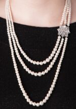 Wen sehe ich denn da? Coco Chanel? Nein! Dann vielleicht Audrey Hepburn? Oder Jacky Kennedy? Ach, das bist du mit dieser Statement-Halskette an deinem Hals! Eine elegante, halblange Perlenkette mit drei Reihen an Kunstperlen in unterschiedlicher Länge, die vom Verschluss aufbauend größer werden. Aber der wahre Blickfang ist dann doch das beinahe hypnotisierende Detail eines‘ Diamant-Imitats; hergestellt aus silberfarbenem Metall und besetzt mit funkelnden Strasssteinchen und vier leuchtenden, facettierten Steinchen… wow! * Kunstperlen  * Strasssteine * Vintage-inspirierter Kstenverschluss mit wunderschönen Details * Anhänger mit Herz am Verschluss