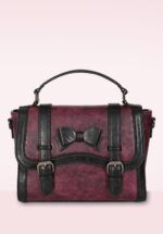 Mach dich bereit für Vintage-Eleganz par excellence! Diese Handtasche aus weinrotem und schwarzem Kunstleder, die mit einer hübschen Schleife versehen ist, ist dank ihres kurzen Henkels und des langen, abnehmbaren Schulterriemens ein absolut vielseitiges Accessoire. * Verdeckter Magnetverschluss * Reißverschluss * 3 zusätzliche Innenfächer (eines mit Reißverschluss) * Abnehmbarer, verstellbarer Schulterriemen * Kann auch als Crossbody-Tasche getragen werden * Ausreichend Platz für dein Telefon, Schlüssel und eine Geldbörse