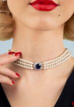 Der Schmuck von Prinzessin Diana war abwechslungsreich und schön zugleich. Sie hatte Geschmack und konnte klassischen Dingen eine moderne Ausstrahlung verleihen. Das lieferte dann auch die Inspiration für diese Lady Diana Perlen-Choker Halskette in Saphir Blau. Die silberfarbene, hypoallergene, handgefertigte Kette hat drei Reihen mit elfenbeinfarbenen ‚falschen‘ Perlen und in der Mitte einen saphirblauen Stein, der mit funkelnden Strasssteinen umhüllt ist. Sie versprüht einen Hauch von Glamour! “Be loyal to the royal within you!“ * Kurzer Choker * Silberfarbenes Metall * ‚Faux‘ Perlen * Strass * Kristall * Verstellbarer Karabinerverschluss * Handgefertigt * Nickelfrei * Match‘ mit den passenden Ohrsteckern für den kompletten Look