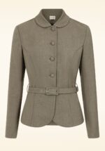 Eine Hommage an zeitlose Weiblichkeit: bei diesem Modell trifft ein softer Schnitt auf die Romantik des Pariser Winters. Der Blazer Solene aus der neuen Kollektion von Miss Candyfloss wurde von der herausragenden französischen Modedesignerin Marie-Louise Carven inspiriert, die in den 1940er und 1950er Jahren Pionierarbeit leistete und die Modegeschichte nachhaltig prägte. Das langärmelige Modell hat eine Knopfleiste und ein auffälliges Schößchen. Gefertigt ist es aus einem festen, aber dennoch weichen Mischgewebe in dunklem Olivgrün, das einen leichten Stretchanteil aufweist. * Figurbetonter Schnitt * Lange Ärmel * Knopfleiste * Schößchen
