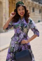 Eine Hommage an zeitlose Weiblichkeit: bei diesem Modell trifft ein softer Schnitt auf die Romantik des Pariser Winters. Der Blazer Laly Violette aus der neuen Kollektion von Miss Candyfloss wurde von der herausragenden französischen Modedesignerin Marie-Louise Carven inspiriert, die in den 1940er und 1950er Jahren Pionierarbeit leistete und die Modegeschichte nachhaltig prägte. Das Modell mit ¾-Ärmeln, Knopfleiste und dezentem Schößchen ist aus einem festen Stoff aus 100 % Baumwolle (nicht elastisch) gefertigt, der durch einen wunderschönen Blumenprint in Lila, Grün, Blau und Schwarz besticht. * Figurbetonter Schnitt * Spitzkragen * ¾-Ärmel * Knopfleiste * Mit Taschen! * Ideal dazu: der passende Swingrock für einen stylischen Look von Kopf bis Fuß