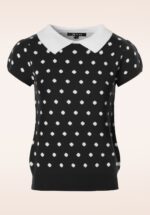 Go retro in diesem 60er Kristen Polkadot Pulli in Schwarz und Weiß! Traumhaft schön und super komfortabel… da bleibt für Frau keinen Wunsch offen, oder…? Hübscher Pulli in einem klassischen Schnitt mit einer runden Halslinie und einem kontrastierenden Kragen in Weiß, kurzen Puffärmeln und einer elastischen Rippborte für eine schöne Passform. Aus einer herrlich weichen und dehnbaren Baumwollmischung in Feinstrick in Schwarz. Mit Polkadots an der Spitze! 😉 * Runde Halsinie * Kontrastierender Kragen * Kurze Ärmel * Elastische Rippborte * Ausreichend lang, kann zu einer Hüfthose getragen werden