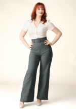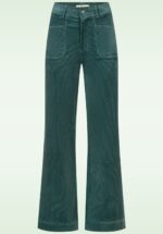 „Who needs a time machine when your pants already know what decade they’re in?“ Entscheide dich für einen groovy Seventies Look mit Cara! Gefertigt aus einem festen, aber dehnbaren Cord-Baumwollmix in Blaugrün – trägt sich herrlich. * Hohe Taille * Aufgenähte Taschen an der Vor- und Rückseite * Reiß- und Knopfverschluss vorne * Gürtelschlaufen * Lange weite Hosenbeine