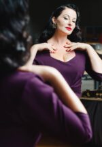 Jedes Kleid verdient eine gute Geschichte, Diva! – Diese Saison haben sich unsere eigenen Inhouse Designer unter anderem von William Travilla, einem amerikanischen Kostümdesigner für Theater, Film und Fernsehen, inspirieren lassen. Er hat auch für Marilyn Monroe das legendäre Plissé Kleid entworfen! Extravagante, aber zeitlose Kleidungsstücke, die dich strahlen lassen, während du das Gefühl hast, die Welt erobern zu können. Starlet wurde aus einem etwas dickeren, aber glatten und angenehmen, dehnbaren Stoff in einer wunderbar smaragdgrünen Farbe gefertigt. Die korrigierende Bengaline Shapewear akzentuiert auf eine feine Art und Weise deinen Körper. Es ist an der Zeit eine neue Geschichte zu schreiben, eine Geschichte über Starlet! * Plissierter V-Ausschnitt * Komplett gefüttert (nicht an den Ärmeln) * Lange Puffärmel mit Manschetten * BH-Träger Halter; damit die BH-Träger nicht verrutschen * Korrigierende Bengaline Shapewear * Verdecktet Reißverschluss hinten * Die hübsche Stella Rose Cherry misst 1,71 m: ihre Accessoires und Pumps sind ihr Eigentum