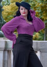 Bequem, elegant und unglaublich weich! Dieser wunderschöne Herbstpullover aus der neuen Kollektion von Miss Candyfloss ist von der fabelhaften Marie-Louise Carven inspiriert, einer bahnbrechenden französischen Modeschöpferin aus den 40er- und 50er-Jahren. Er hat einen eleganten Carré-Ausschnitt mit Spitzkragen, lange Bischofsärmel und ein dezent eingewebtes Leopardenmuster. Der weiche, luftige Stretchstoff in lebhaftem Fuchsia ist angenehm zu tragen und eine echte Augenweide. * Spitzkragen * Carré-Ausschnitt * Lange Bischofsärmel * Passend für Hosen mit normaler Leibhöhe
