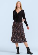 “Let’s put on my favourite knitted skirt!“ Dieses Schätzchen wurde aus einem schweren, aber angenehmen, feingestrickten, dehnbaren Stoff in Schwarz gefertigt, der ein grafisches Blumenmuster und einen eingearbeiteten Glitzerfaden in Creme und Sand zeigt – trägt sich herrlich! * Figurnahe Passform * Elastischer Taillenbund * Kein Reißverschluss oder Knopf; anziehen & ‚ready to go‘! * Fällt bei einer Größe von 1,70 m auf die Mitte der Wade * Der abgebildete Sweater ist in unserem Shop nicht erhältlich