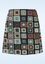 Verspielt und beeindruckend zugleich: Dieser Jacquard-Minirock ist ein echter Hingucker! Der ausgestellte Rock ist aus einem etwas dickeren und festen Jacquard-Stoff (nicht elastisch!) gefertigt und besticht durch ein farbenfrohes Patchwork-Muster im Stil der 70er Jahre. * Ausgestellter Schnitt * Silberfarbener Reißverschluss auf der Rückseite * Vollständig gefüttert * Endet bei einer Körpergröße von 1,70 m knapp über dem Knie