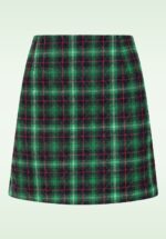 Dieser Minirock sorgt im Handumdrehen für gute Stimmung! Das Modell ist aus einem etwas dickeren und festen Stoff (nicht elastisch!) mit einem klassischen Karomuster in Grün und Marineblau mit einem Hauch von Rot. * Ausgestellter Schnitt * Silberfarbener Reißverschluss auf der Rückseite * Vollständig gefüttert * Endet bei einer Körpergröße von 1,70 m knapp über dem Knie