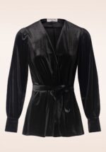 Dieses Top, im Stil einer Strickjacke, ist der perfekte Hingucker, der jedes Outfit komplementiert! Victoria weiß das Licht zu fangen, denn es wurde aus einem weichen und dehnbaren, schwarzen Samtstoff gefertigt, der sich herrlich trägt. * Lange Puffärmel mit breiten Manschetten * Abnehmbarer Bindegürtel * Lang genug, um mit einer normalen Hose kombiniert zu werden