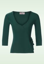 Elegant und süß ist dieser 50s Addicted Sweater in Forest Green von Banned! Schlicht aber trotzdem ganz speziell mit den vielen, niedlichen Details 😉 Dieses Top hat eine schöne sog. „Slash“-Halslinie und schmeichelnde 3/4 Ärmel mit einem kleinen Schlitz die mit angenähten Schleifchen versehen sind, sooo süß! Hergestellt aus einem herrlich weichen und fließenden Viskose-Mix in Feinstrick in Dunkelgrün der seine perfekte Passform auch nach mehrfachem Waschen behalten wird. Ein vielseitiges, klassisches Top das in dem Kleiderschrank von einer Vintage Lady nicht fehlen sollt. Der Name sagt es schon; wir sind süchtig nach diesem Juwel! * U-Boot-Halslinie * 3/4 Ärmel mit Schleifchen * Die Länge ist ausreichend um es zu einer Hüfthose zu tragen