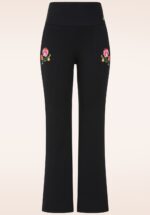 Mit ausgestellten Beinen und bezaubernden Blütendetails – dieses Teil strahlt florale Anmut aus und ist gleichzeitig herrlich bequem zu tragen! Diese wunderschöne Schlaghose ist aus einer etwas dickeren, elastischen Bio-Baumwollmischung in Schwarz gefertigt und besticht durch florale Stickereien im Hüftbereich. * Ausgestellter Schnitt * Elastisch und bequem * Elastischer Bund * Mit Taschen!