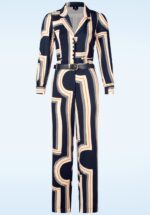 Michelle Jumpsuit mit Grafikmuster in Marineblau und Creme
