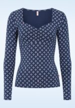Leinen los! Mit dem Oberteil Princess Dream siehst du immer fantastisch aus, ob zu Lande oder auf dem Wasser! Das langärmelige Modell mit gerafftem Herzausschnitt ist aus einer superbequemen und elastischen Bio-Baumwollmischung gefertigt, das für eine schöne Passform sorgt. Den dunkelblauen Stoff ziert ein maritimer Print in Weiß mit roten Akzenten. * Herzausschnitt * Lange Ärmel * Ideale Länge auch in Kombination mit Low-Waist-Hosen