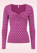 Dieses Oberteil ist so fröhlich ist wie sein Name! Das langärmelige Modell mit gerafftem Herzausschnitt ist aus einer superbequemen und elastischen Bio-Baumwollmischung in Lila/Pink gefertigt und weist einen attraktiven Blumen-Print auf. * Herzausschnitt * Lange Ärmel * Ideale Länge auch in Kombination mit Low-Waist-Hosen