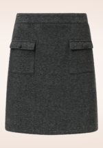 “Casual daytime chic!“ Dieser Rock trägt sich hochtailiiert und zeigt eine schmeichelhafte A-Linie mit Taschen vorne. Gefertigt aus einem etwas dickeren, aber doch weichen, leicht dehnbaren Stoff in Dunkelgrau mit einem Fischgrätenmuster. Wie stylst du Anna?! * A-Linie * Taschen vorne * Reißverschluss hinten * Endet bei einer Größe von 1,70 m oberhalb des Knies