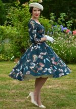 Amelia Swingkleid mit Pilzprint in Dunkelblau ~ exklusiv bei Topvintage
