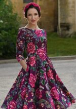 Mit Stil durch den Herbst! Dieses schwarze Swingkleid mit dezentem Herzausschnitt, ¾-Puffärmeln und praktischen Taschen sorgt für einen verspielten und gleichzeitig eleganten Look. Es ist aus einem festen, aber dennoch weichen Baumwollmischgewebe gefertigt und besticht durch einen zauberhaften Blumenprint in warmen Herbsttönen. * Swingkleid * Dezenter Herzausschnitt * ¾-Puffärmel * Mit Taschen! * Verdeckter Reißverschluss an der Seite * Kann für einen besonders festlichen Look mit Petticoat getragen werden * Endet bei einer Körpergröße von 1,70 m unterhalb des Knies * Bitte beachte: Die Farbe des Artikels im Video kann von der tatsächlichen Farbe abweichen * Die im Video gezeigten Pumps und Accessoires sind nicht in unserem Shop erhältlich