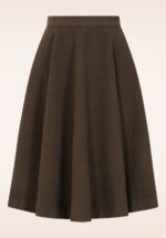 Der Rock Tara strahlt Eleganz und Anmut aus. Das exklusiv bei Topvintage erhältliche Modell im weiten, fließenden Swing-Style wird hoch in der Taille getragen und zaubert eine wunderschöne feminine Silhouette. Es ist aus einem festen, aber dennoch weichen Mischgewebe in Dunkelbraun gefertigt. * Swing-Style * Seitliche Eingrifftaschen * Verdeckter Reißverschluss an der Seite * Mit Unterrock * Kann mit einem unserer Petticoats kombiniert werden * Exklusiv bei Topvintage erhältlich * Endet bei einer Körpergröße von 1,70 m unterhalb des Knies