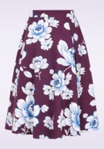 Mit dem Swingrock Rosie erstrahlst du in der schönsten Blumenpracht! Das exklusiv bei Topvintage erhältliche Modell im weiten, fließenden Swing-Style wird hoch in der Taille getragen und zaubert eine wunderschöne feminine Silhouette. Es ist aus einem festen, aber dennoch weichen Baumwollmischgewebe in Aubergine gefertigt und besticht durch einen tollen Blumenprint in Blau und Weiß. * Swing-Style * Seitliche Eingrifftaschen * Verdeckter Reißverschluss an der Seite * Kann mit einem unserer Petticoats kombiniert werden * Exklusiv bei Topvintage erhältlich * Endet bei einer Körpergröße von 1,70 m unterhalb des Knies