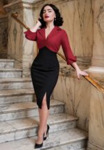 Dianne Two Toned Etuikleid in Rot und Schwarz.