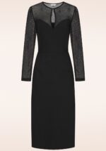 Spinne dein Netz der Verführung! Dieses schwarze Kleid mit taillierter Silhouette besticht durch seinen Herzausschnitt und die langen Ärmel aus Mesh-Gewebe mit Spinnennetz-Muster. Es ist aus einem robusten, elastischen Bengalin-ähnlichen Stoff gefertigt, der für eine schöne Passform sorgt und herrlich angenehm zu tragen ist. * Bleistiftkleid * Herzausschnitt mit Schlüsselloch-Detail * Lange Ärmel aus Mesh-Gewebe * Verdeckter Reißverschluss mit Haken hinten * Schlitz hinten * Endet bei einer Körpergröße von 1,70 m knapp unterhalb des Knies