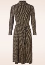 “Always have fun with fashion, dress to entertain yourself!“ Dieses Midi Kleid hat lange Ärmel, einen Rollkragen und einen Bindegürtel, der deine Taille noch mal besonders betont. Gefertigt aus einem angenehmen, dehnbaren Ecovero Viskosemix in Schwarz mit einem allzu schönen Retro Muster in Lila, Grün und Creme. * Midi Kleid * Lange Ärmel * Rollkragen * Feste Bindebänder in der Taille * Kein Reißverschluss oder Knopf * Reicht bei einer Größe von 1,70 m bis zur Mitte der Wade