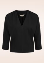 Schlicht, elegant und unglaublich schick! Dieses tolle Oberteil ist ein vielseitiges Basic mit dem gewissen Extra. Es hat einen schmeichelhaften V-Ausschnitt mit einer dezenten Raffung, die eine feminine Silhouette schafft. Das Modell in klassischem Schwarz ist aus einer geschmeidigen und elastischen Jersey-Viskose-Mischung gefertigt, die herrlich angenehm zu tragen ist und unzählige Styling-Möglichkeiten bietet. * V-Ausschnitt mit Raffung * ¾-Ärmel * Ideale Länge auch in Kombination mit Low-Waist-Hosen