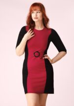 Kontrastreich und beeindruckend: Das Kleid Thelma mit ¾-Ärmeln und Rundhalsausschnitt besticht durch seinen verspielten A-Linien-Schnitt und ein fest vernähtes Gürteldetail. Es ist aus einem weichen und elastischen, crêpe-ähnlichen Stoff in Schwarz und Rot gefertigt, der herrlich angenehm zu tragen ist. * Ausgestellter Schnitt * ¾-Ärmel * Verdeckter Reißverschluss hinten * Endet bei einer Körpergröße von 1,70 m knapp über dem Knie * Exklusiv bei Topvintage erhältlich