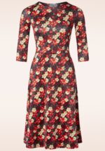 Exklusiv bei Topvintage ~ Julieta Floral Midi Kleid in Schwarz und Multi