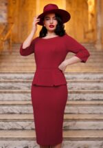 Dankbarkeit, Ziele, Wachstum und Ausstrahlung! In dieser Saison haben sich unsere talentierten Inhouse-Designer von tragbaren, klassischen Silhouetten mit einem Hauch von Business-Ästhetik inspirieren lassen: Bring deine innere Powerfrau zum Vorschein – mit besonders femininen Styles, die die Geschäftswelt revolutionieren. Das Modell Donna ist aus einem hochwertigen, festen und dennoch geschmeidigen weinroten Stoff gefertigt, der nicht knittert und leicht dehnbar ist, was für einen unglaublich bequemen Sitz sorgt. Erfolg können wir nicht garantieren, aber wir wissen, dass du in diesem Kleid absolut umwerfend aussehen wirst! 😉 * Bleistiftkleid * ¾-Ärmel * Schößchen * Vollständig gefüttert * BH-Trägerhalter, damit deine Träger nicht verrutschen * Schlitz hinten * Verdeckter Reißverschluss hinten * Lira Karina ist 1,56 m groß. Sie trägt ihre eigenen Pumps und Accessoires.