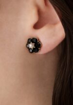 Ein zeitloser Klassiker! Dieses elastische Armband besteht aus schwarzen Kugeln, Kunstperlen, Blumen mit funkelnden Strasssteinen und einem kleinen herzförmigen Anhänger. * Elastisch * Kunstperlen * Strass * Nickelfrei