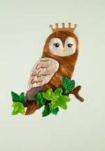 “Woodland royalty, the owl whispers wise tales under the moon’s glow. “In every leaf,“ he hoots, “lies a story waiting to be told.“ * Online exklusiv in den Niederlanden, Deutschland und Belgien erhältlich bei Topvintage * Handgefertigt * Silberfarbener Stiftverschluss * Erstwilder x Fleur Harris ‚Woodland Creatures‘ Kollektion