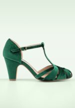Tanze, als ob niemand zuschaut! Diese stilvollen Pumps aus smaragdgrünem Samt bezaubern mit einem T-Riemen, einer abgerundeten Schuhspitze, hübschen Aussparungen und einem eleganten Trichterabsatz. Bestelle diese süßen Schuhe jetzt und du kannst schon mal einen Freudentänzchen aufführen 😉 * T-Riemen * Runde Schuhspitze * Dekorative Aussparungen * Trichterabsatz * Verstellbarer Knöchelriemen * Bequeme Innensohle aus Leder * Rutschfeste Sohle