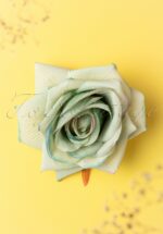 Verleihe deinem (vintage) Outfit den letzten Schliff mit dieser 50s Scented Love Flower Hair Clip in Faded Blue. Die schöne Rose in einem fahlen Blauton ist versehen mit einer soliden silberfarbenen Haarklammer damit sie gut an ihrem Platz bleibt. Dank der silberfarbenen Anstecknadel mit Pinnverschluss kannst du sie nicht nur als Haarblume sondern auch als Brosche an deiner Kleidung tragen. „Time to bloom!“ * Silberfarbene Haarklammer * Silberfarbene Anstecknadel mit Pinnverschluss