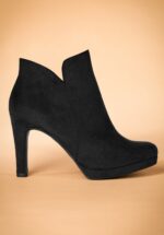 Schwarz ist einfach immer angesagt: Diese eleganten, im Stil der 50er Jahre gestalteten Stiefeletten aus Velourslederimitat wirst du gar nicht mehr ausziehen wollen, denn sie sind unglaublich stylisch und perfekt für den Herbst! Der Schuh (einschließlich Absatz) ist mit schwarzem Velourslederimitat bezogen und weist im Knöchelbereich dezente Cutouts auf. Das bequeme TOUCHit-Soft-Fußbett sorgt für besten Tragekomfort, und dank der Plateausohle sind die Stiefeletten nicht so hoch, wie sie aussehen – eindeutig eine Win-Win-Situation 😉 Perfekt zum Ausgehen, für einen Shoppingtag oder fürs Büro! * Vegan! * Stiefelette * Runde Zehenkappe * Plateausohle * Seitlicher Reißverschluss * Bequemes TOUCHit-Soft-Fußbett * Rutschfeste Laufsohle