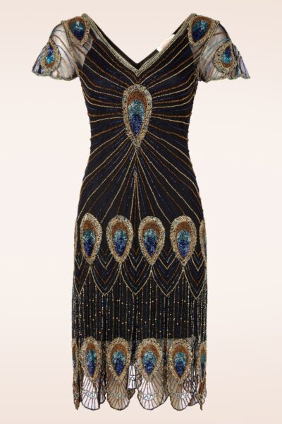 Home > Kleidung > Kleider > Amelia Peacock Flapper-Kleid in Schwarz und Blau