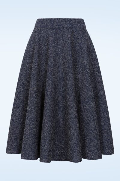 Einfach schick und unglaublich vielseitig! Dieser melierte Swingrock in Marineblau mit dezenten weißen Akzenten ist ein echter Klassiker mit modernem Flair. Das Modell mit praktischen Taschen hat einen schmeichelhaften, femininen Schnitt und schwingt sich bei jedem Schritt wunderschön mit. Es ist aus einem festen, aber dennoch geschmeidigen, grob gewebten Mischgewebe mit einem Hauch Viskose gefertigt, das angenehm zu tragen ist und deinem Look eine zarte Struktur verleiht.    * Weiter Swing-Style: kann mit einem Petticoat kombiniert werden * Mit Taschen! * Reißverschluss mit Haken auf der Rückseite  * Endet bei einer Körpergröße von 1,70 m unterhalb des Knies