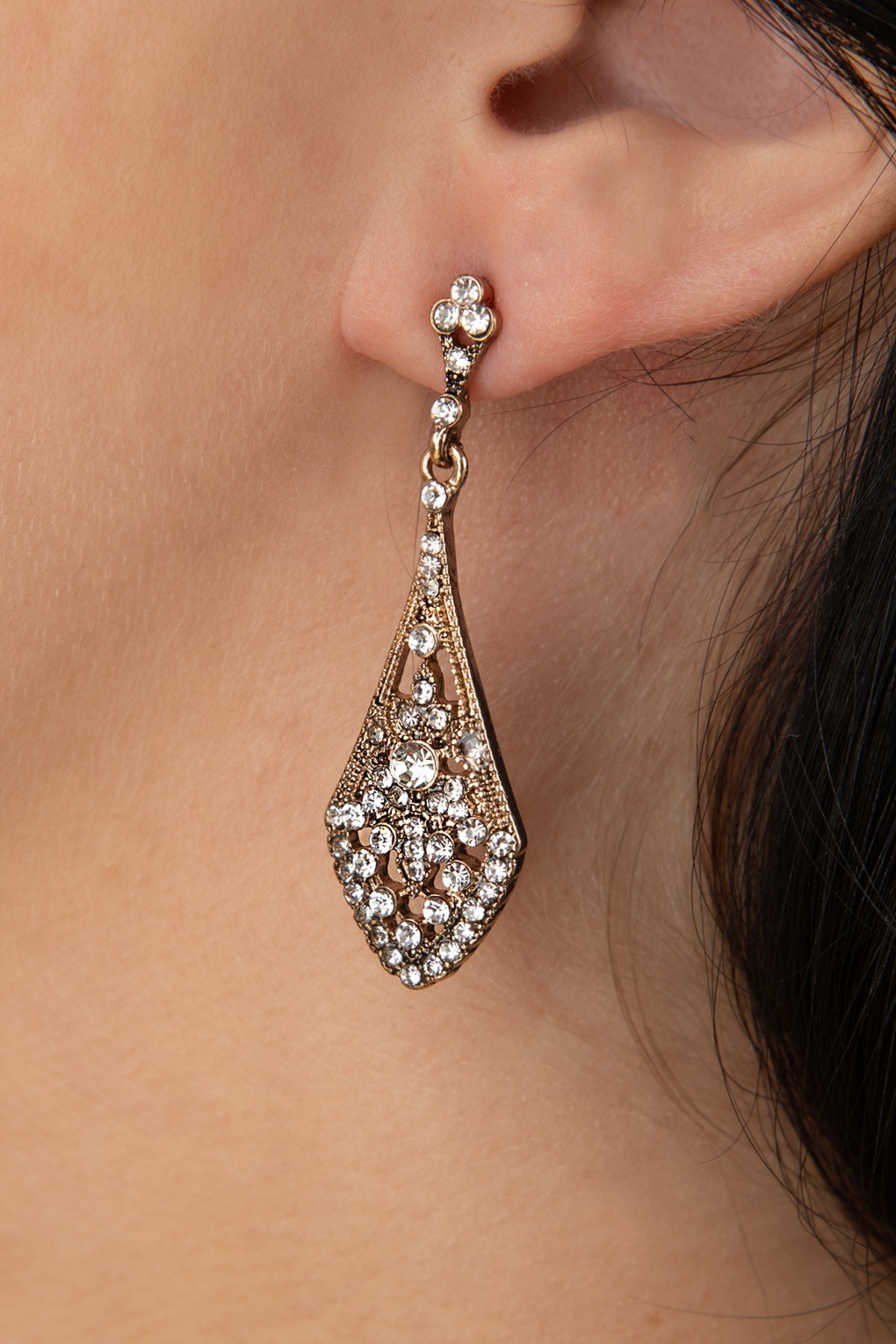 Komplementiere dein Outfit mit diesen wunderschönen Ohrhängern an deinen Ohren! Sie erinnern an die eleganten Formen der 20er Jahre und wurden aus antik-goldfarbenem Metall gefertigt und mit funkelnden Strasssteinen verziert.    * Antik-goldfarbene Stecker * Strass * Nickelfrei * Vollende deine Look und kombiniere sie mit der passenden Art Deco Crystal Halskette in Antik-Gold