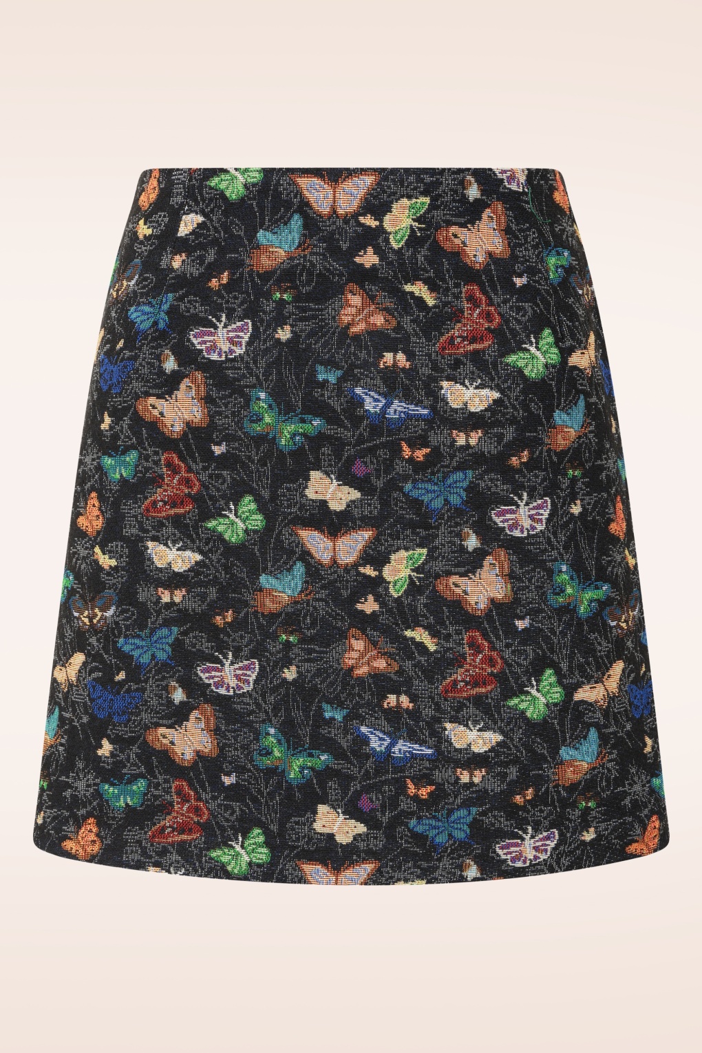 Verspielt und beeindruckend zugleich: Dieser Jacquard-Minirock ist ein echter Hingucker! Der ausgestellte Rock ist aus einem etwas dickeren und festen Jacquard-Stoff (nicht elastisch!) gefertigt und besticht durch ein tolles Schmetterlingsmuster.   * Ausgestellter Schnitt * Silberfarbener Reißverschluss auf der Rückseite * Vollständig gefüttert * Endet bei einer Körpergröße von 1,70 m knapp über dem Knie