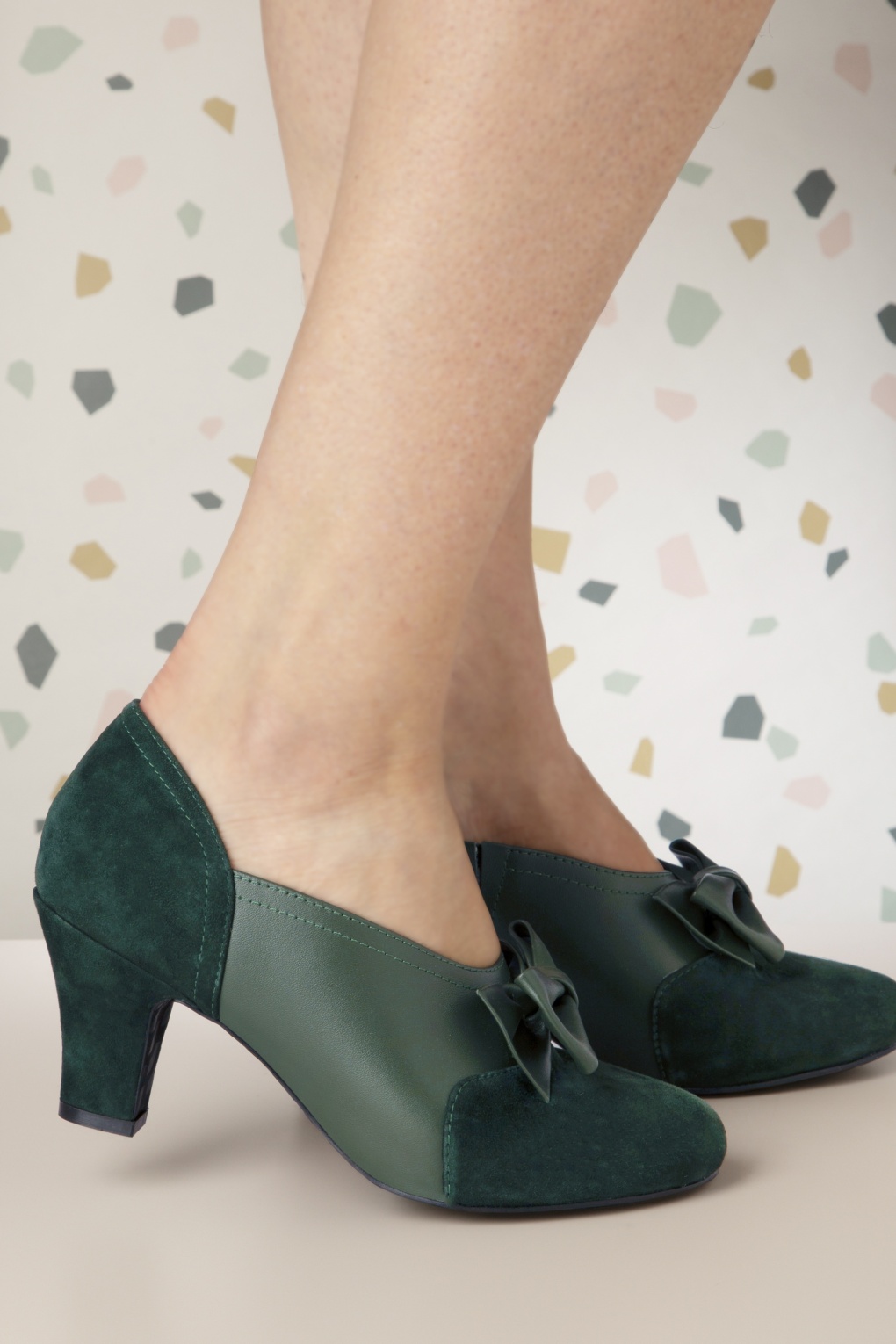 Die Inspirationsquelle für diese zeitlose Kollektion – eine erneute Kooperation der Marken Lola Ramona und Topvintage – war das Thema Nostalgie, eine sentimentale Sehnsucht nach dem Glück vergangener Tage. – Diese Pumps wurden aus einer großartigen Kombination aus hochwertigem Wildleder und Leder in Dunkelgrün gefertigt und mit einer Schleife auf dem Spann vollendet. “Time to make some new memories in these shoes!“ * LOLA RAMONA ♥ TOPVINTAGE * Runde Schuhspitze * Schleife * Hochwertiges Leder/Wildleder * Elastischer Einstieg * Stabiler, nicht all zu hoher Absatz * Innensohle aus Leder  * Anti-Rutsch Sohle mit Kuss-Muster