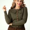 Dieser 50s Debbie Short Sleeve Sweater in Grass Green ist ein vielversprechender und vielseitiger Pulli der online in Deutschland, Belgien und den Niederlanden exklusiv bei TopVintage erhältlich ist. Ein neutraler Pullover der einfach zu jedem Rock oder jeder Hose passen wird. In einem klassischen Schnitt, mit einer runden Halslinie, kurzen Ärmeln und einer elastischen Rippborte für eine schöne Passform. Aus einer grasgrünen, legeren und dehnbaren Viskosemischung in Feinstrick. Bleibt nur noch die Frage in welcher Farbe du dieses Schätzchen bestellen möchtest. An dir die Wahl! 😉    * Runde Halslinie  * Kurze Ärmel  * Elastische Rippborte  * Ausreichend lang, kann zu einer Hüfthose getragen werden