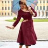 • Exklusiv bei Topvintage ~ Aria Samt Blumen Swing Kleid in Tiefrot € 62,95