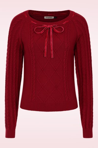 Home > Kleidung > Bow Strickpullover mit Zopfmuster in Tiefrot