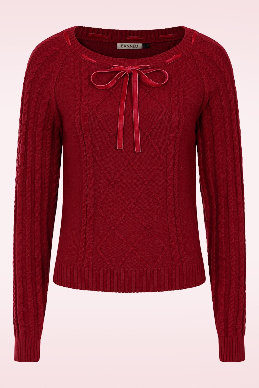 Home > Kleidung > Pullover > Bow Strickpullover mit Zopfmuster in Tiefrot