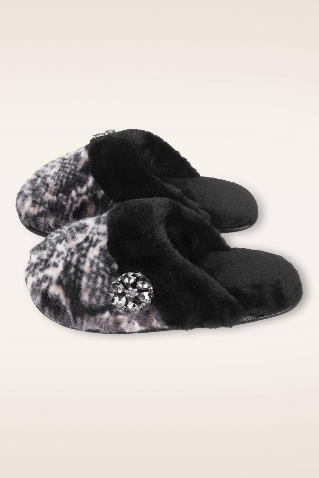 Diese flauschigen Hausschuhe mit etwas Glitzer an der Seite verwandeln dein Zuhause in einen Laufsteg! Die Pantoffeln aus kuschelig weichem, warmem Kunstfell in Schwarz und Grau sind an der Seite mit einer funkelnden Brosche versehen. Mit diesen Hausschuhen siehst du sogar an entspannten Sonntagen umwerfend aus, wenn du eine Tasse Kaffee oder Tee in deinem Morgenmantel oder Negligé genießt! 😉 * Pantoffeln * Kunstfellbesatz * Strass * Weich und warm * Rutschfeste Laufsohle