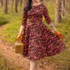 Exklusiv bei Topvintage ~ Adriana Herbst Swingkleid in Weinrot und Orange.