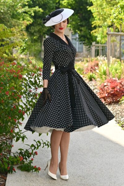 Dotty Darling Polkadot-Swingkleid in Schwarz