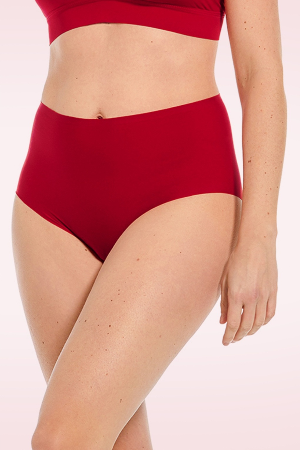 Dream Invisibles Slips in Rot: Erkennbare Linien und Nähte unter deinem figurnahen Kleid oder Rock sind alles andere als schmeichelhaft und gehören der Vergangenheit an – denn diese taillenhohen Slips in Dunkelrot werden dafür sorgen, dass du deine (enganliegende) Kleidung voller Selbstvertrauen tragen kannst! Außerdem fühlen sie sich an, wie eine zweite Haut, dank des glatten und weichen, elastischen Stoffs. Hole deine figurbetonte Kleidung wieder aus dem Kleiderschrank, denn ab jetzt werden die Leute nur noch auf dich achten und nicht auf deine Unterwäsche! 😉    * High-Waist-Slip  * 2-er Pack * Nahtlos an Bein und am oberen Rand * Baumwollzwickel * Der abgebildete BH ist in unserem Shop nicht erhältlich